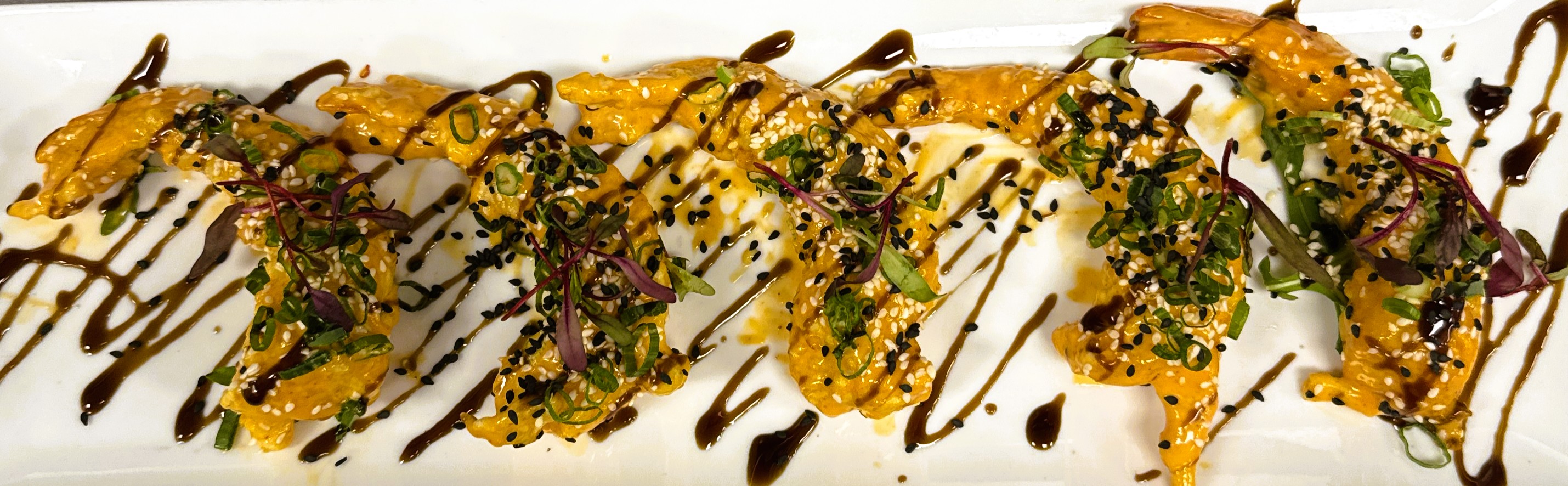 (5) jumbo shrimp, butter milk, cornstarch, Japanese mayonnaise, sweet Thai chili, green onions & sesame seed.